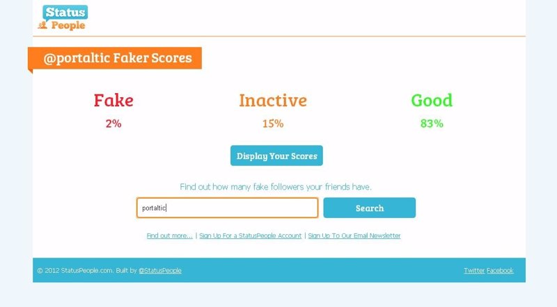 Gracias a una nueva aplicación llamada StatusPeople permite a los usuarios saber cuántos seguidores de su cuenta son en realidad cuentas falsas. Incluso cada usuario puede comprobar no solo su cuenta sino la de otros usuarios de la red de microblog.